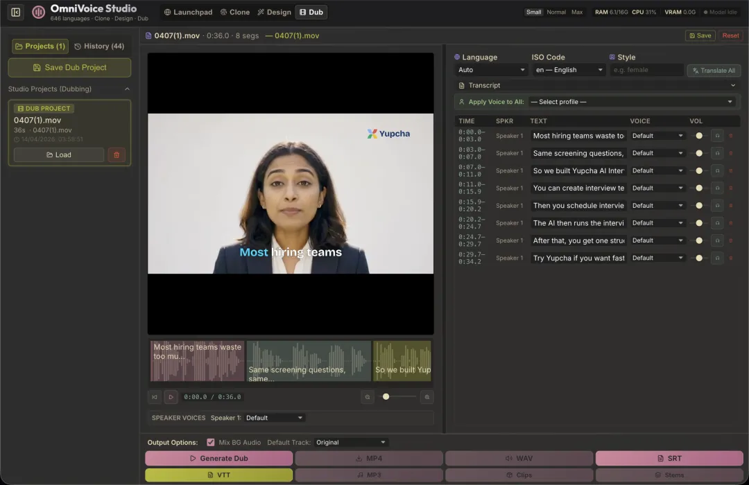 还在找配音?本地跑 AI 配音工具,3 秒克隆、600种语言、双语导出、全免费,你还在等什么?