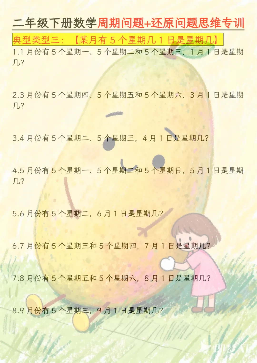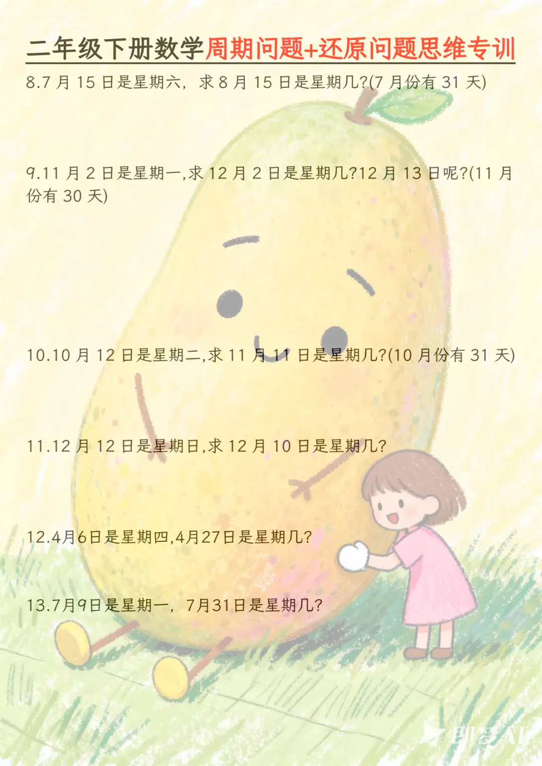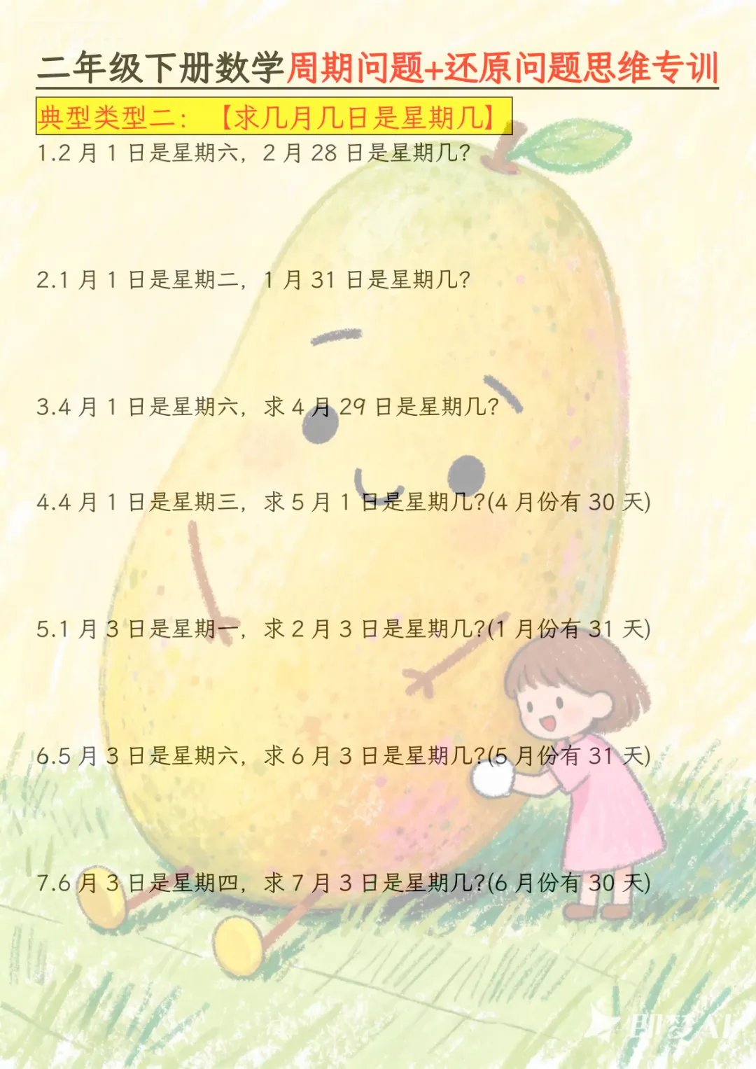 二年级下数学周期+还原问题两大重难点,电子版可打印