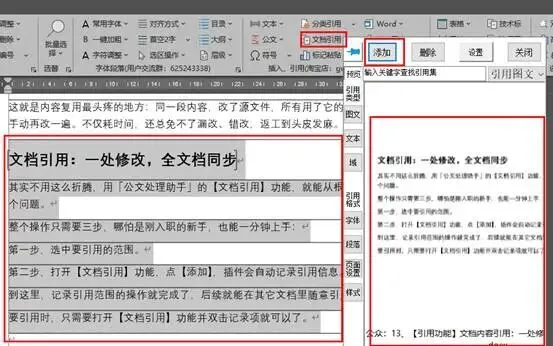 【引用功能】文档内容引用:源文档修改,多文档同步更新