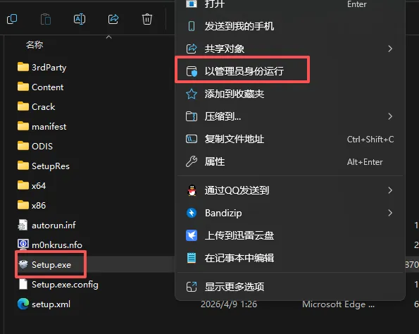 3、选中”Setup.exe”右键选择“以管理员身份运行”