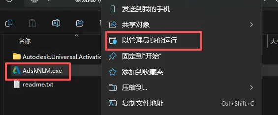 11.回到第一步解压的文件,打开【crack】,选中【AdskNLM.exe】右键以管理员身份运行