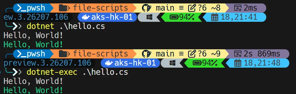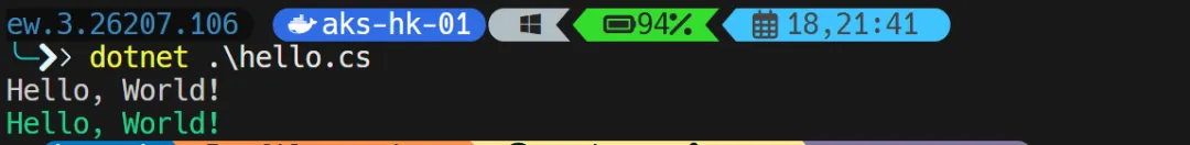 执行 dotnet hello.cs 输出结果如下: