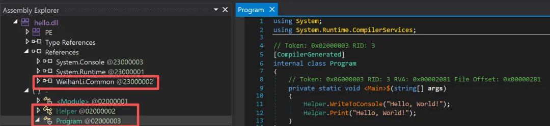 在 hello.cs 中也可以直接引用