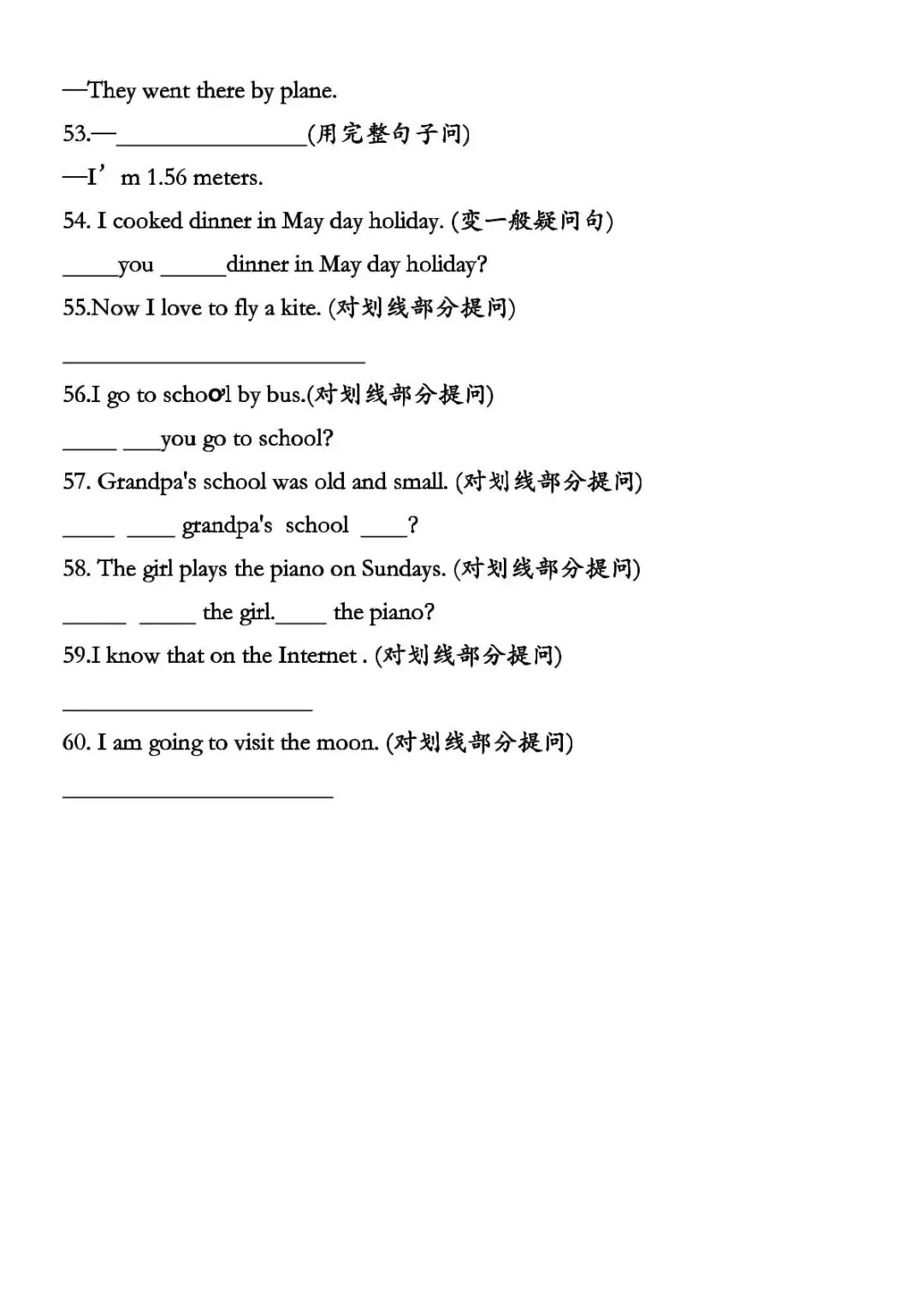 26春通用版六年级下册英语《期中复习句型转换真题汇编60题》,共5页,可打印.