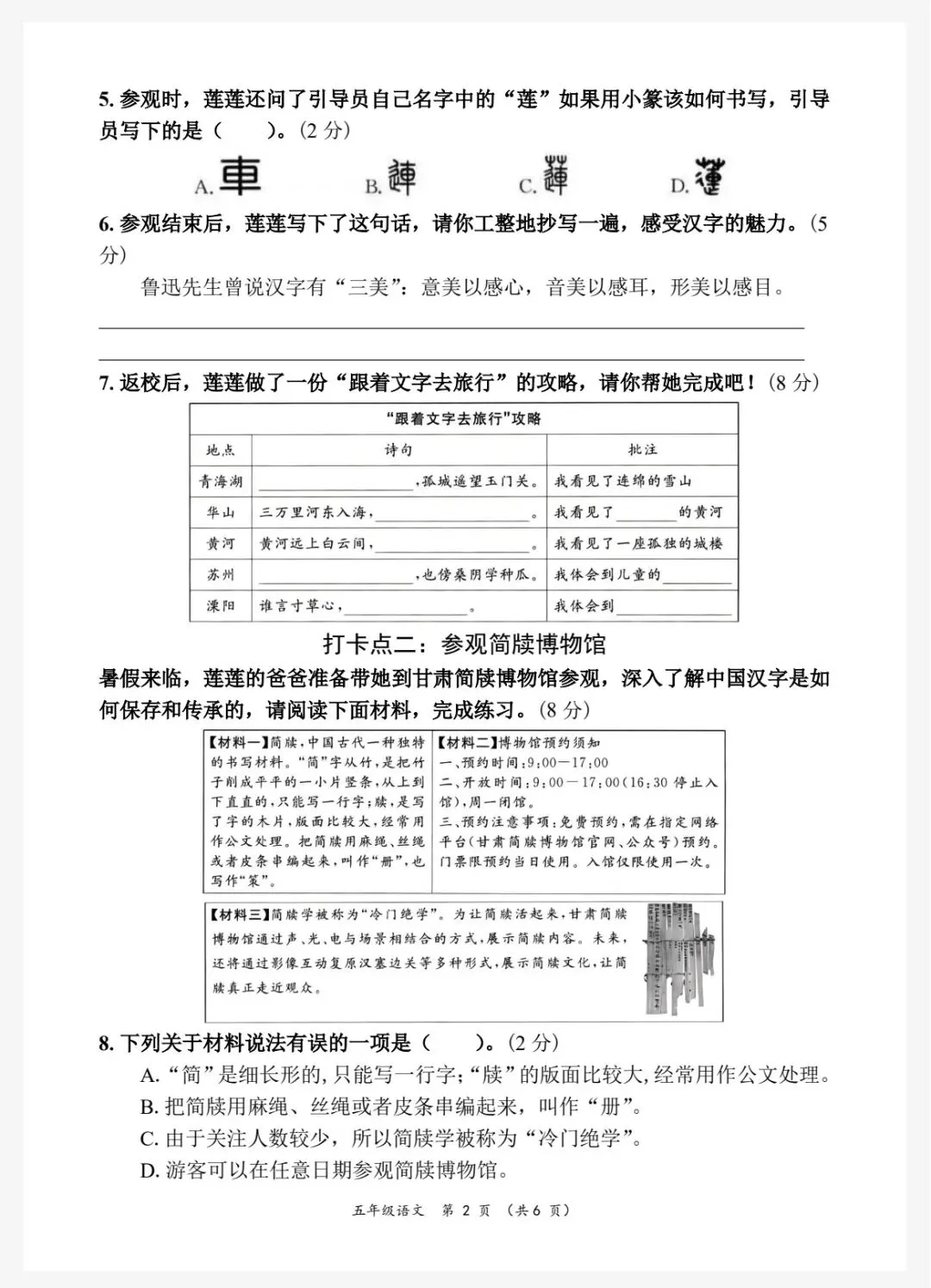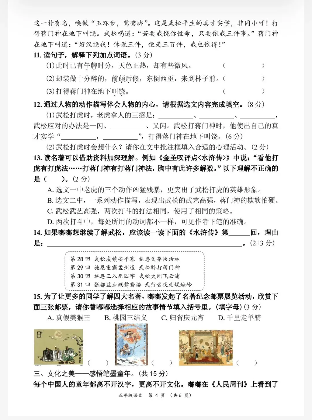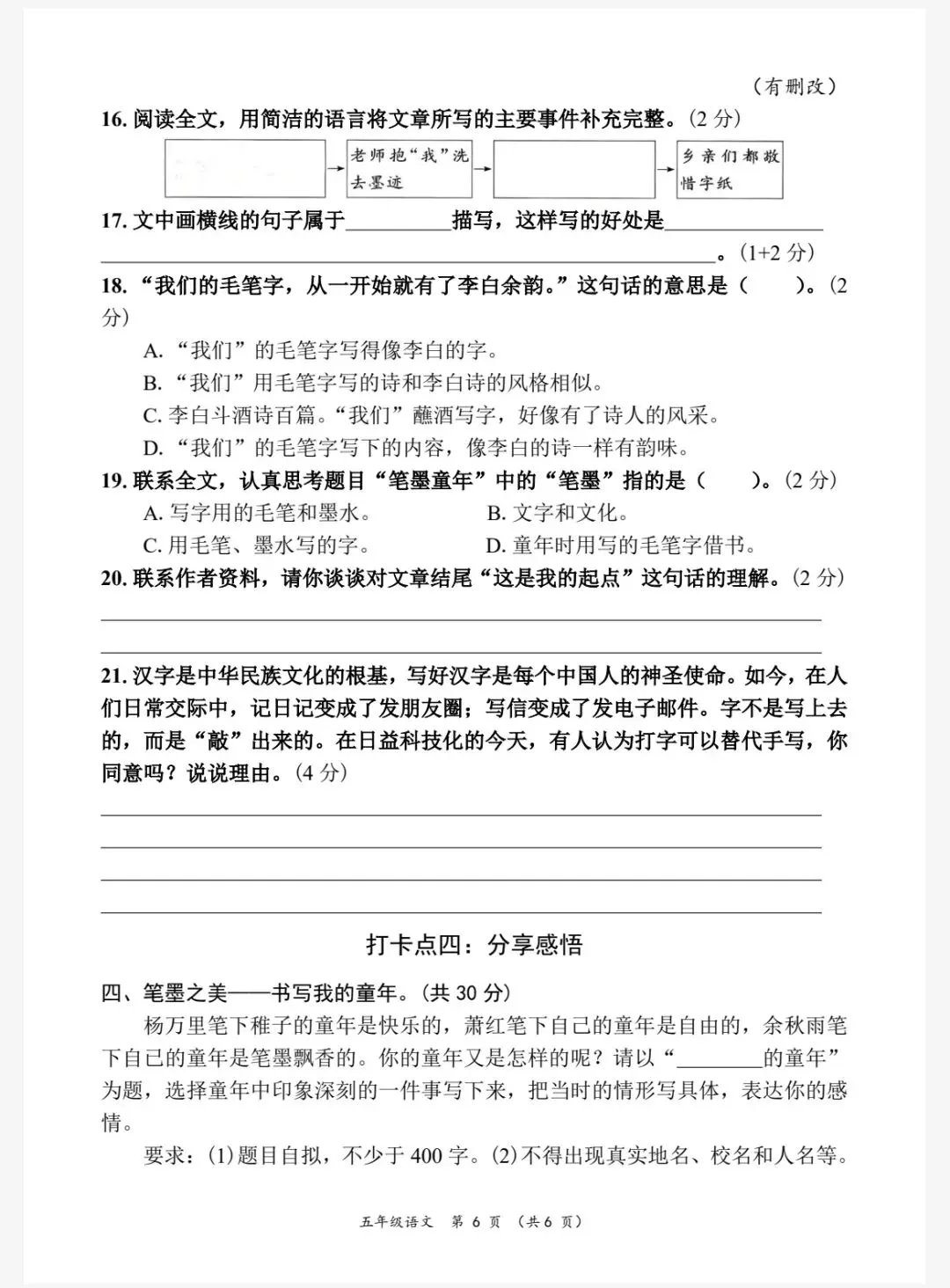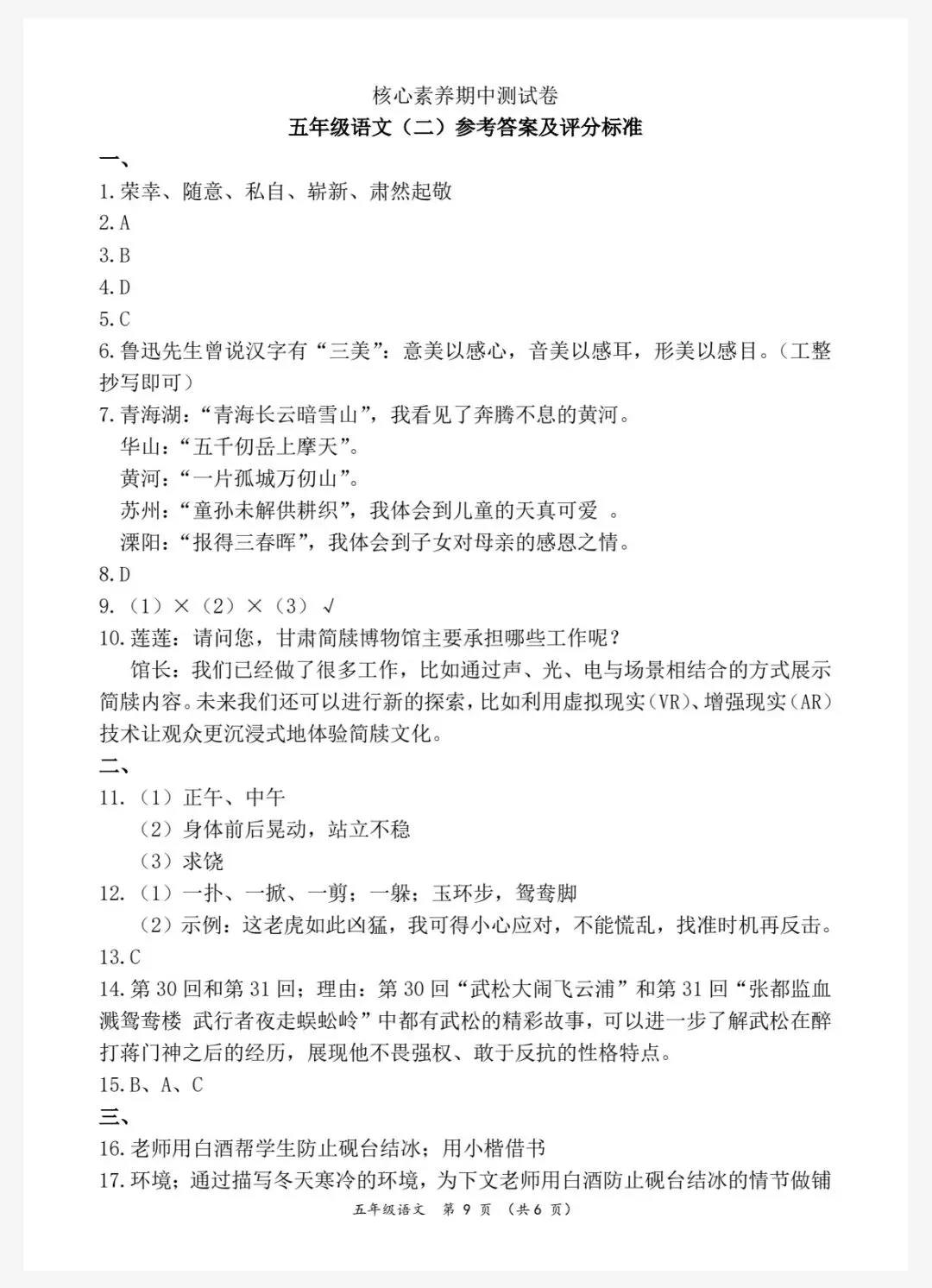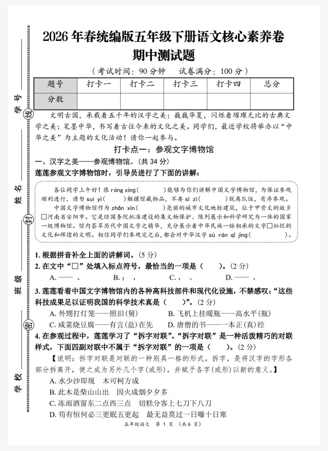 26春五年级下册人教部编版语文《期中真题测试卷》共5套(附答案)高清可打印