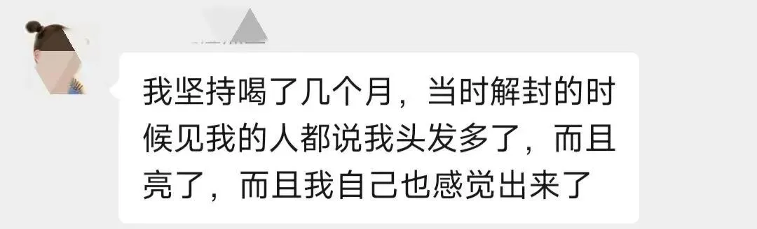 有中年男性用户喝了一段时间,反馈睡眠变沉了,眼睛不干了,晨起状态恢复到了年轻时的感觉。女性用户则感觉皮肤亮了、头发掉得少了,整个人更有“精气神”。