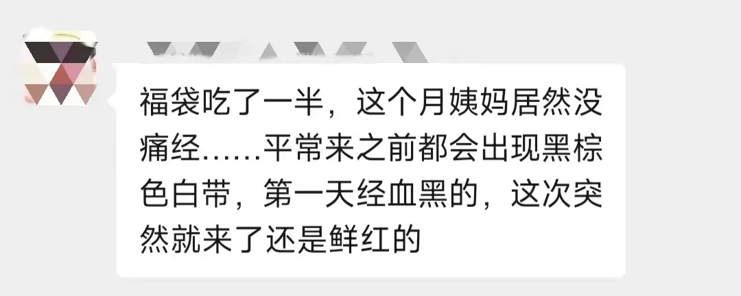 – “痛经好了一大半,经前也不烦躁了,不知不觉大姨妈就来了。”