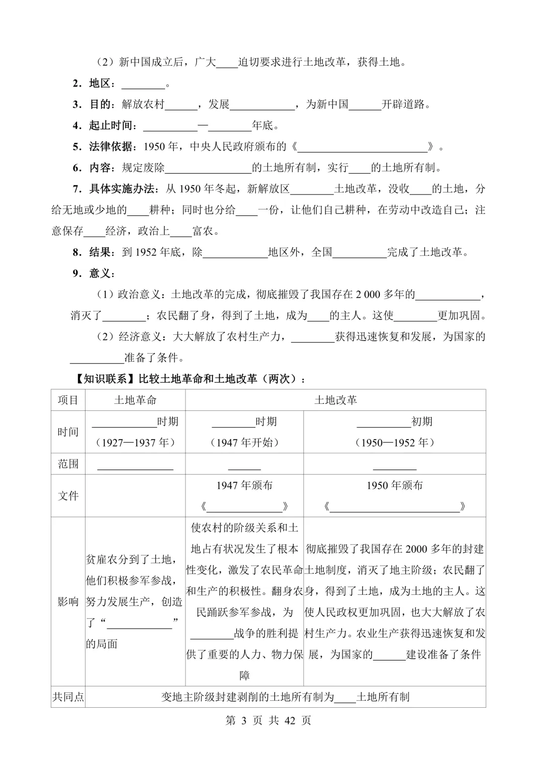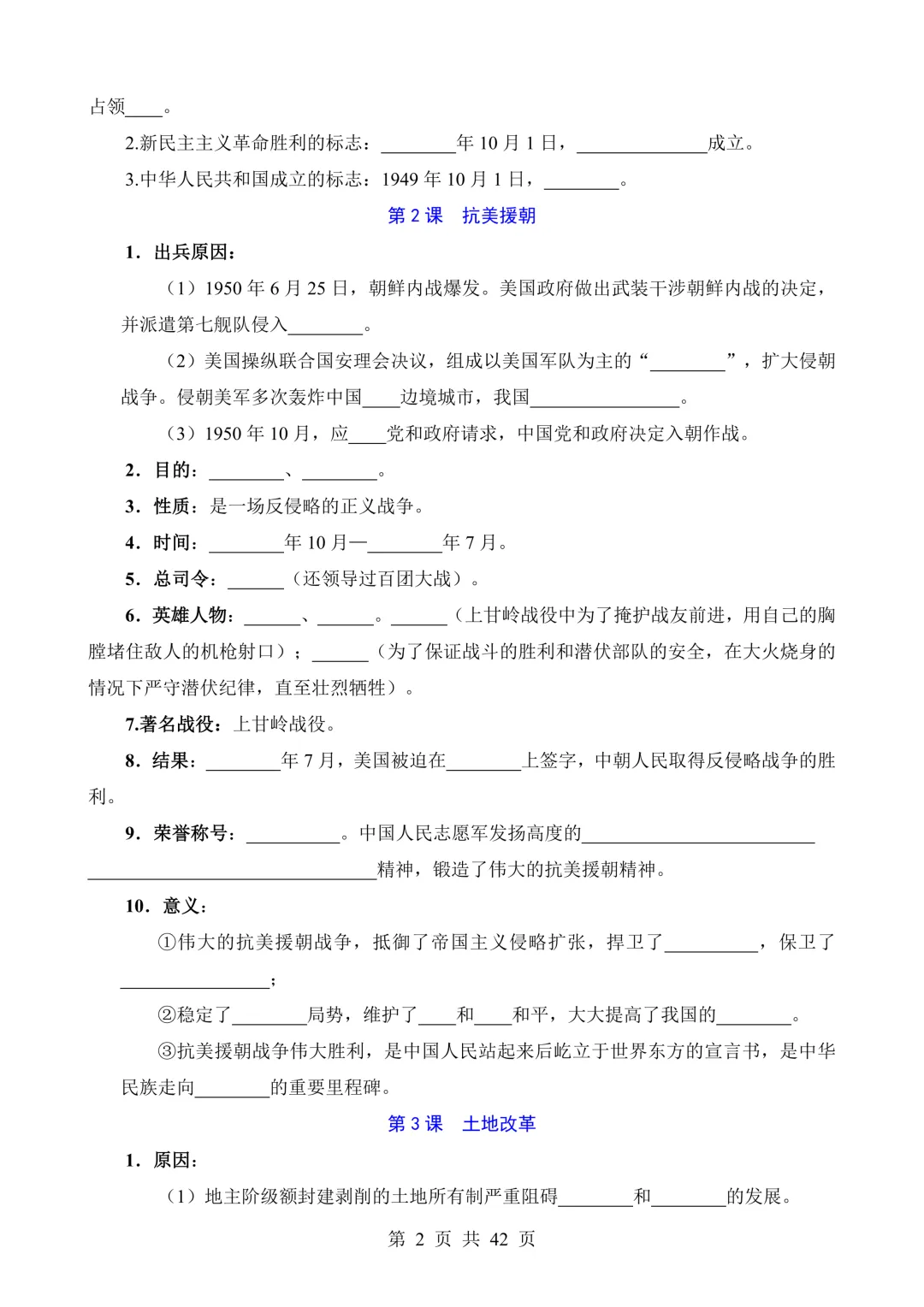 八年级下册历史全册知识点默写-42页电子版可下载打印