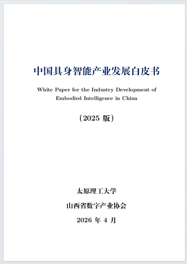 《中国具身智能行业应用白皮书(2025版)》由太原理工大学、山西省数字产业协会联合编制,系统梳理中国具身智能产业全景。报告明确具身智能是新质生产力核心载体,已纳入国家“人工智能+”专项行动,确立2025年建创新体系、2027年达世界先进水平的双阶目标。