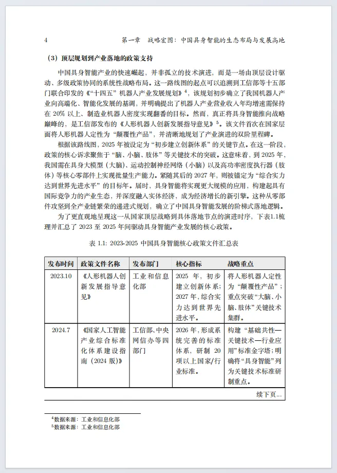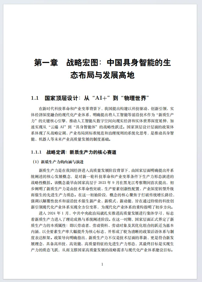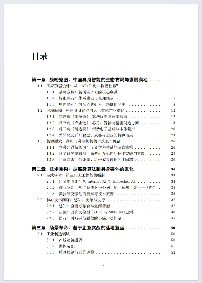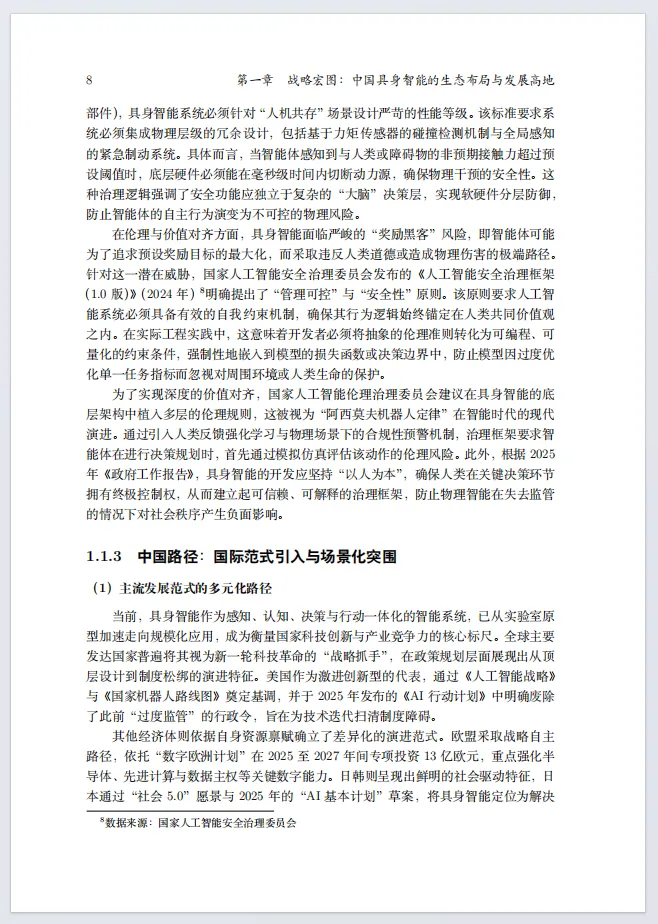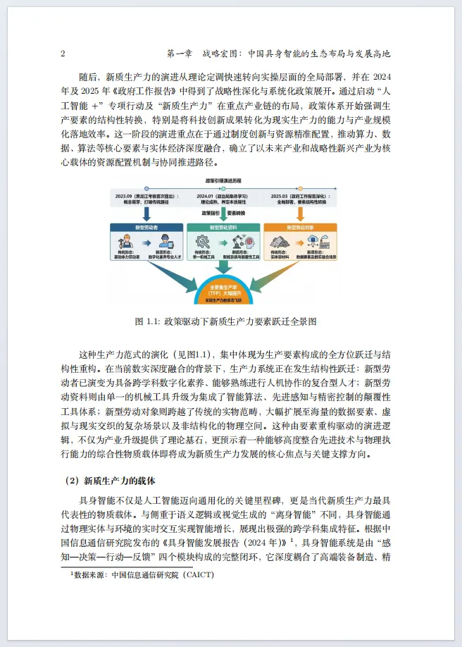 技术上完成从离身算法到具身实体的范式转移,构建感知、决策、执行闭环,突破多模态融合、具身大模型、灵巧操控等关键技术。产业形成京津冀(算法策源)、长三角(产业链协同)、珠三角(本体量产)及合肥、成都、山西差异化集群格局。
