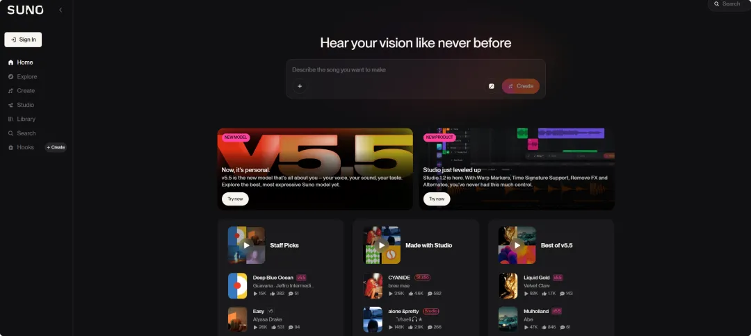 ⭕官方网址:https://suno.com/
