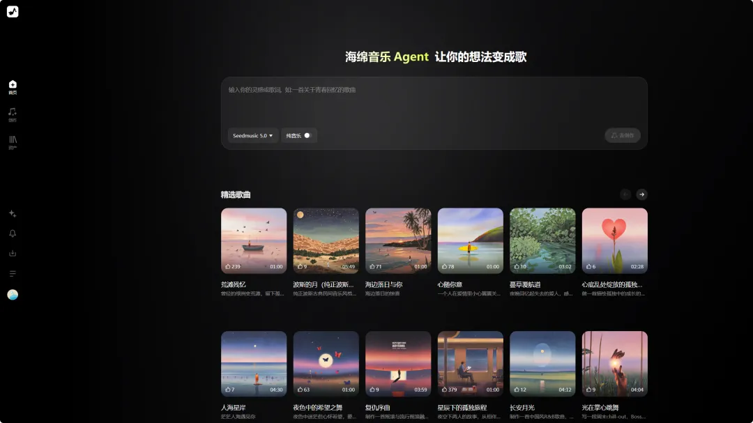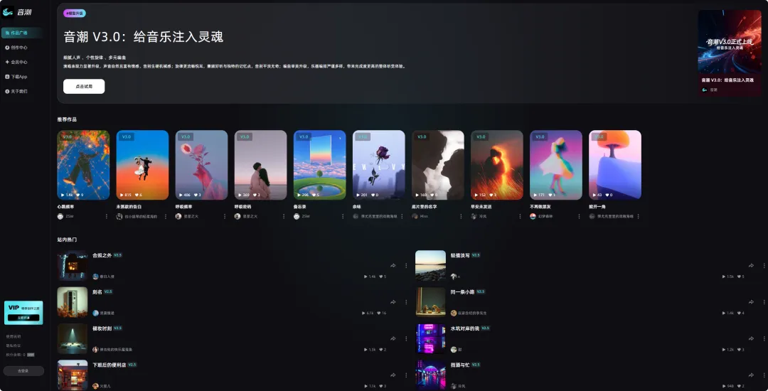 音潮是一站式音乐创作与消费平台。它依托自研音乐大模型,可将文字、图片或音频灵感秒速转化为高品质音乐,并提供可视化编曲、多维音色控制、实时编辑与丰富视觉玩法。