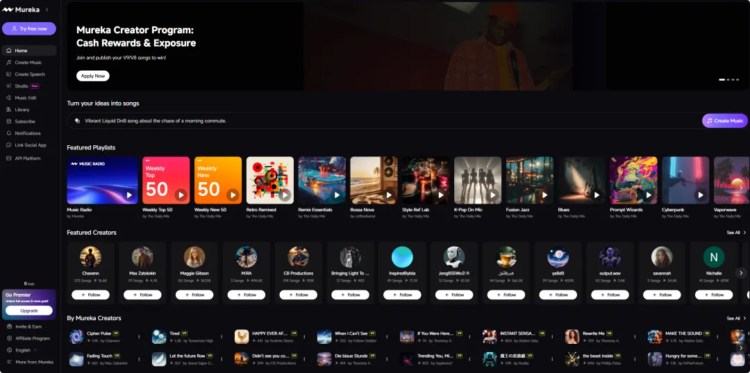 免费使用:字节跳动出品,提供免费的AI音乐创作和分享平台。