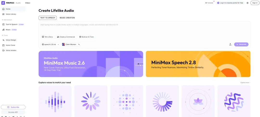 ⭕官方网址:https://www.minimax.io/audio