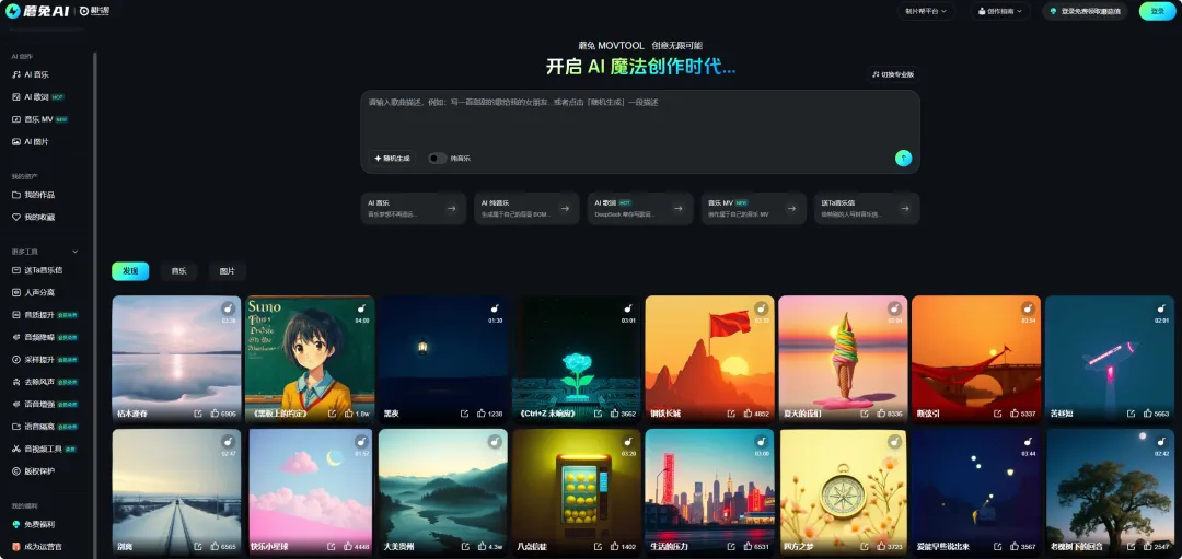 蘑兔AI是新一代AI创意制作平台,极简操作,极速输出,海量社区内容。