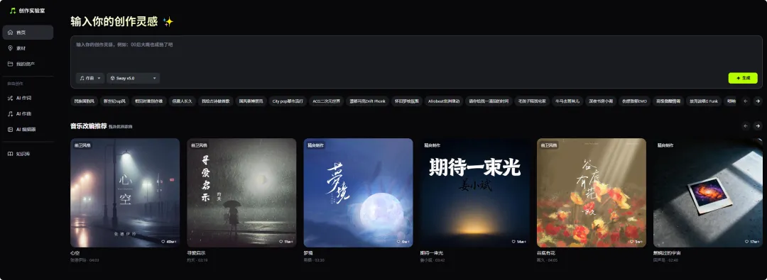 多模态输入:支持文本/音频/曲风多重灵感源。