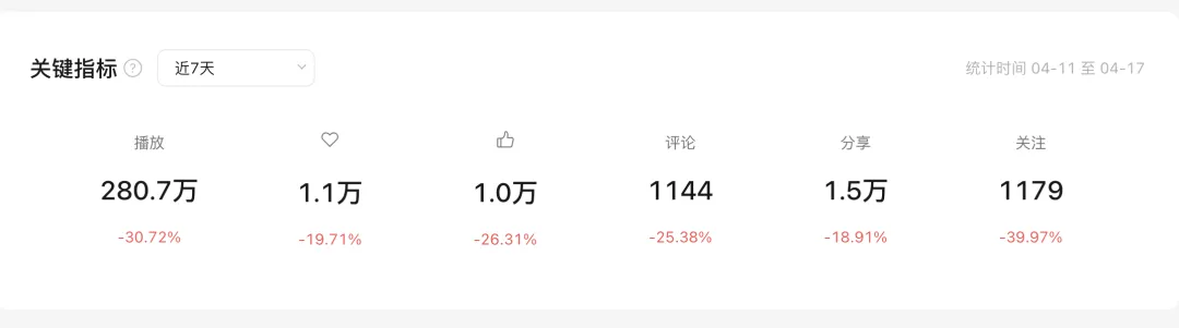 备注:其他平台本周整体进展不错,数据进步喜人,这里不做展示~(因为整体量级远没有蝴蝶号高)——每个平台用户群体是有差异的,所以发布时间、视频类型以及标签其实还是要适当调整的~