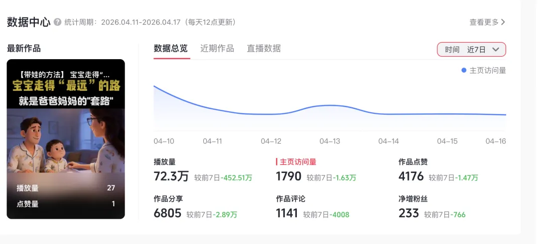 整体:本周数据没有上周好(主要是本周干其他副业去了,且再帮别人经营智能体,所以花的时间较少)