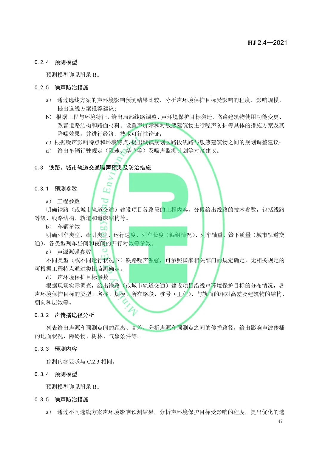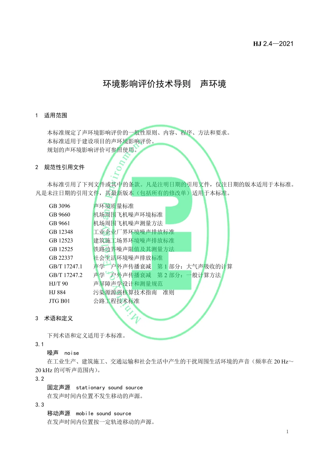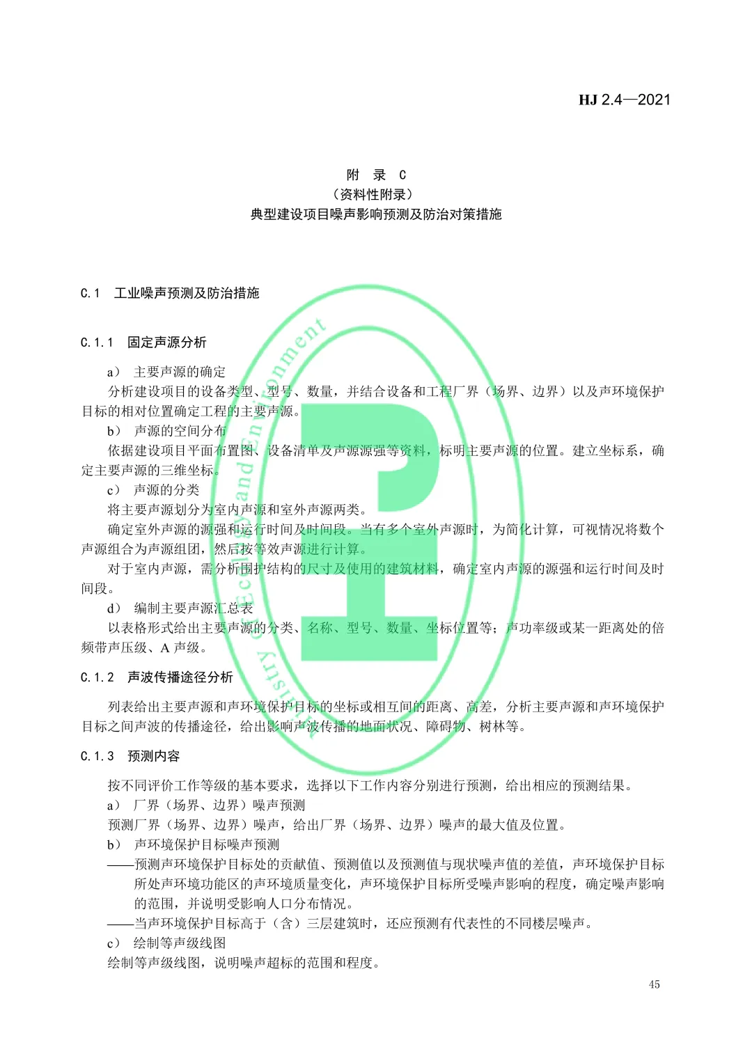 (附pdf)《环境影响评价技术导则 声环境》HJ2.4-2021(现行有效) ⬇️ 文件下载链接:HJ+2.4-2021+环境影响评价技术导则+声环境(水印版)20220316.pdf 【免责说明】本文件仅供行业学习与工作参考,使用前请以官方正式版本为准,严禁商用及擅自转载。