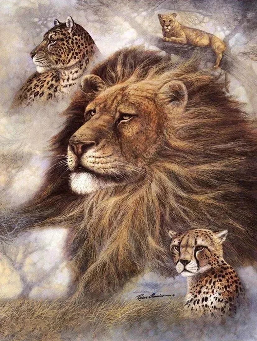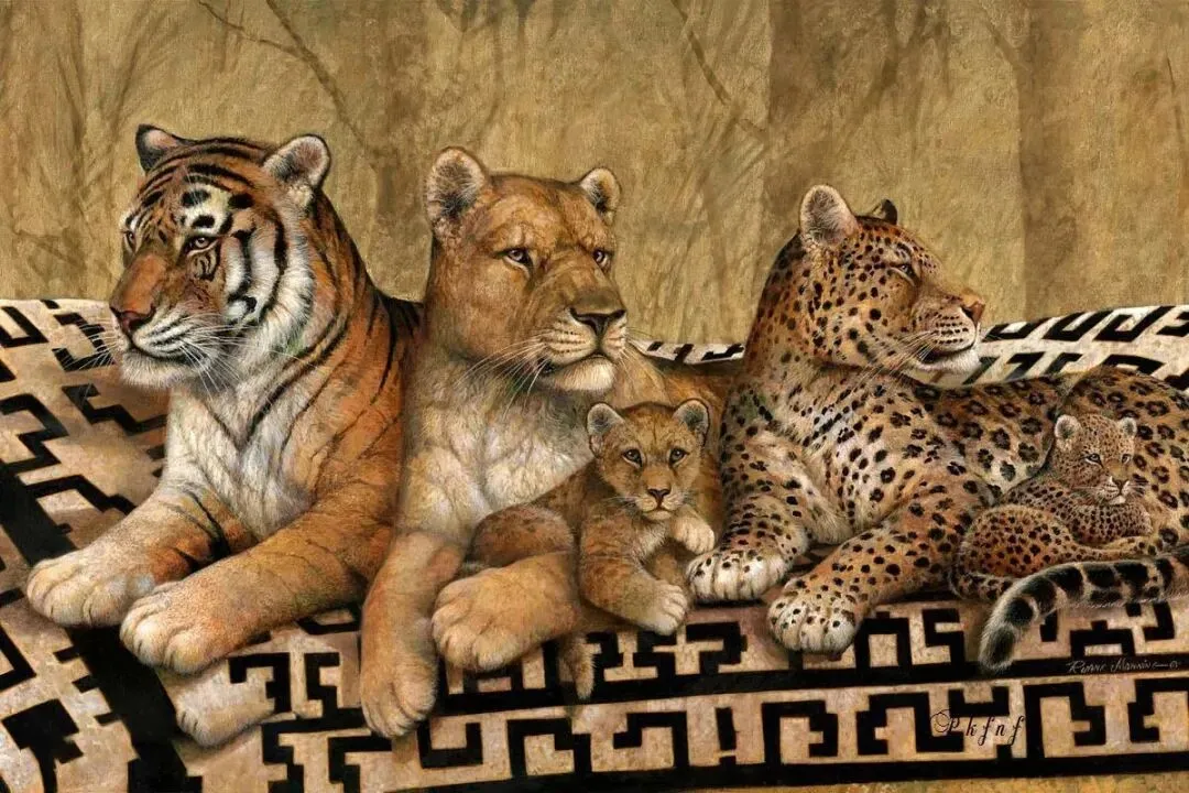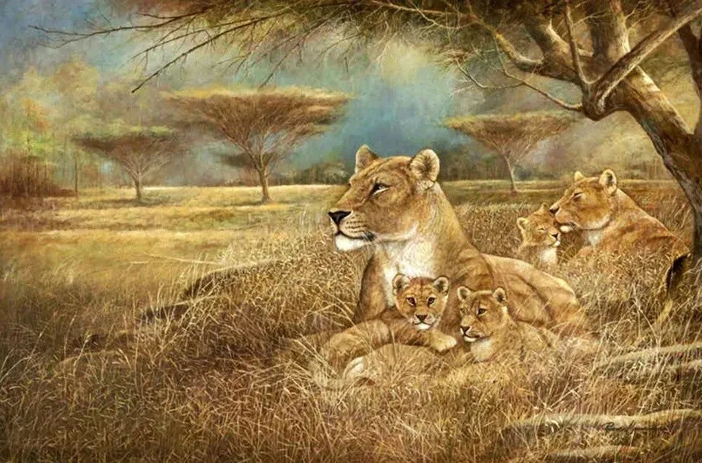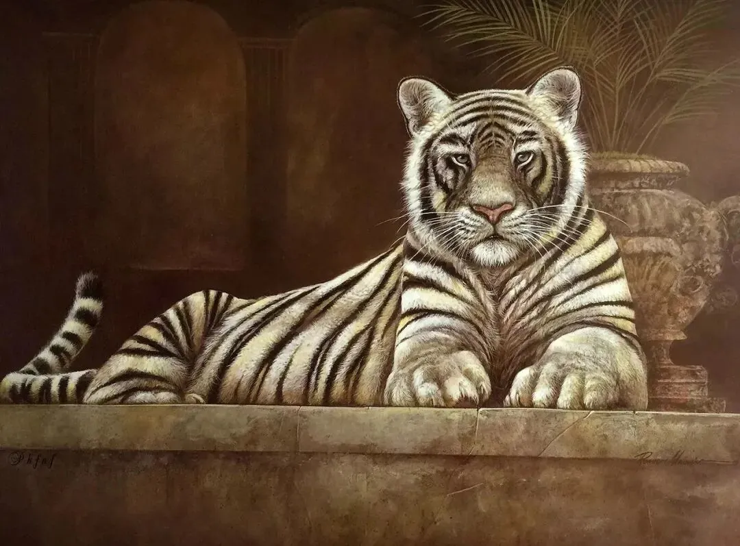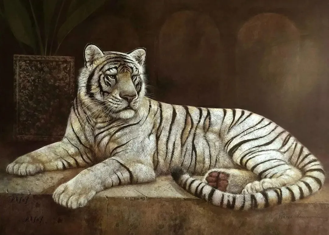 他的动物们常被赋予人类的表情和姿态,比如猫咪抱着毛线球打盹、狗狗戴着草帽趴在门廊,生动展现出悠闲自在的生活状态,细节处理精致,毛发纹理、衣物褶皱都刻画入微。