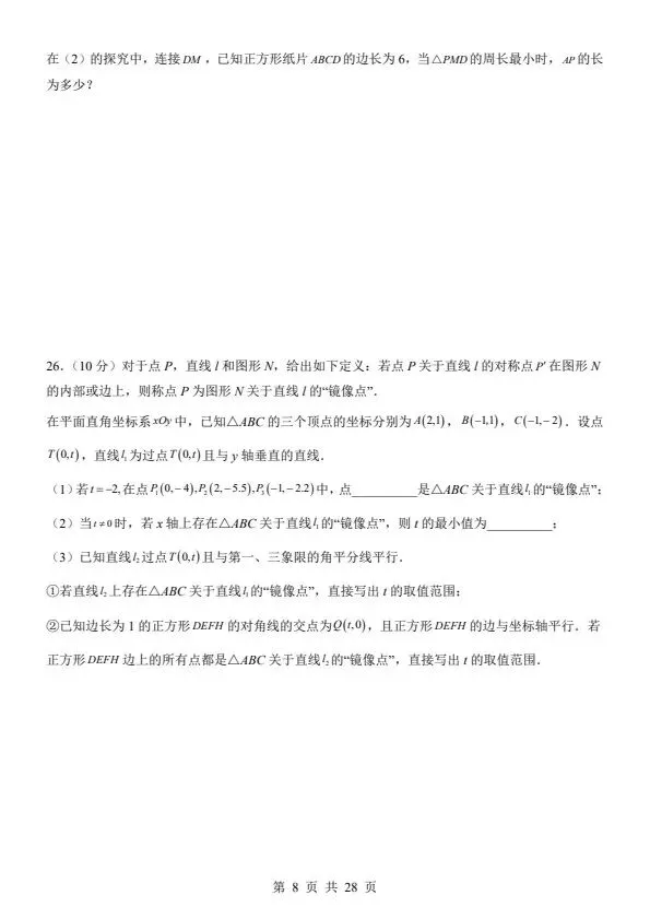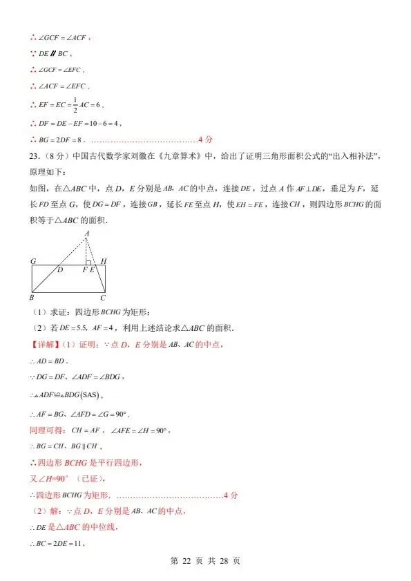 2026新八年级下册数学苏科版期中模拟卷(含解析+答题卡)完整可打印