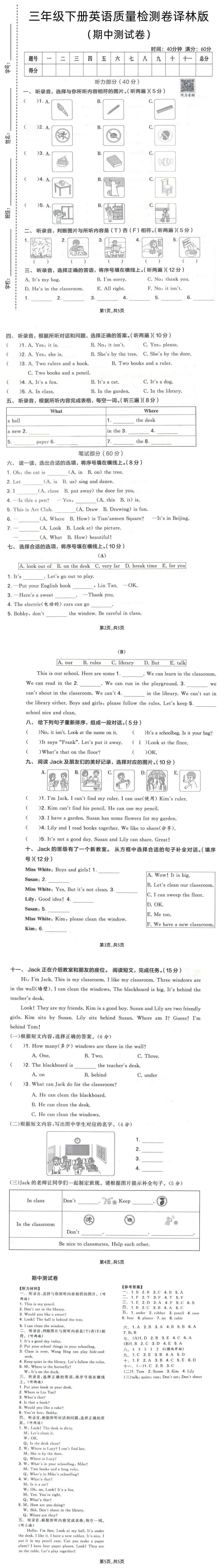 26春英语译林版三四五六年级下册《期中测试卷》多套 电子版可下载