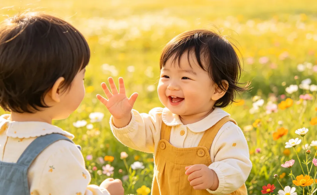 有的娃见到别的小朋友,躲在大人身后不敢出来,连头都不敢露,生怕别人碰他。但养得好的娃就不一样,他会主动朝着人家挥手,嘴里还叽里咕噜说半天我们听不懂的婴语,那股子热情劲儿,藏都藏不住。