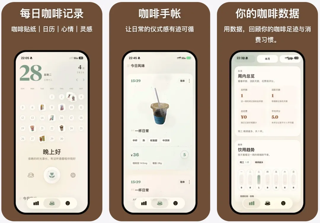 简介:一款专注于咖啡记录的应用,帮助你轻松保存每一次喝咖啡的体验,并通过趋势统计回看自己的口味偏好与日常习惯。