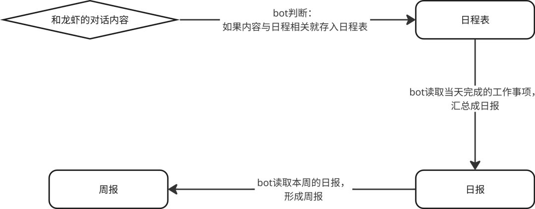 接入飞书“数字大脑”(多维表格)后,它能实时帮你记录日程,并根据你的工作进度自动汇总生成日报和周报。