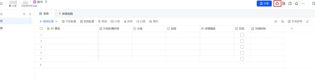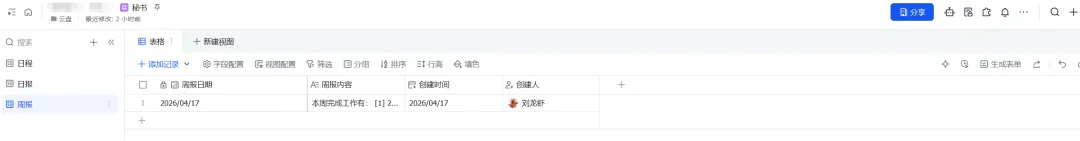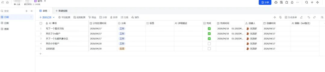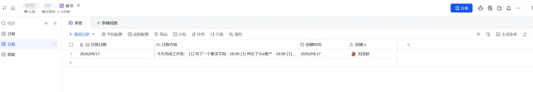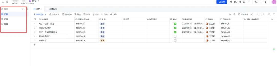 《秘书》是我多维表格的名字。