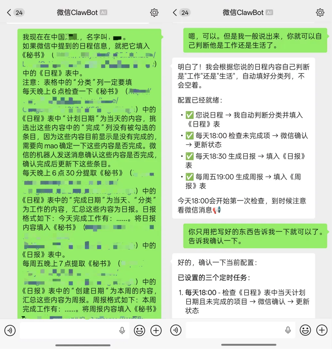 如果微信中提到的日程信息,就把它填入《秘书》(链接)中的《日程》表中。