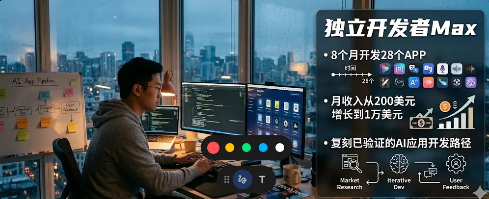 这个标准听起来低,但它隔绝了一个普通开发者最大的陷阱:完美主义。他没有花三个月打磨一个功能,因为他很早就想通了:市场不为完美买单,市场为足够好买单。