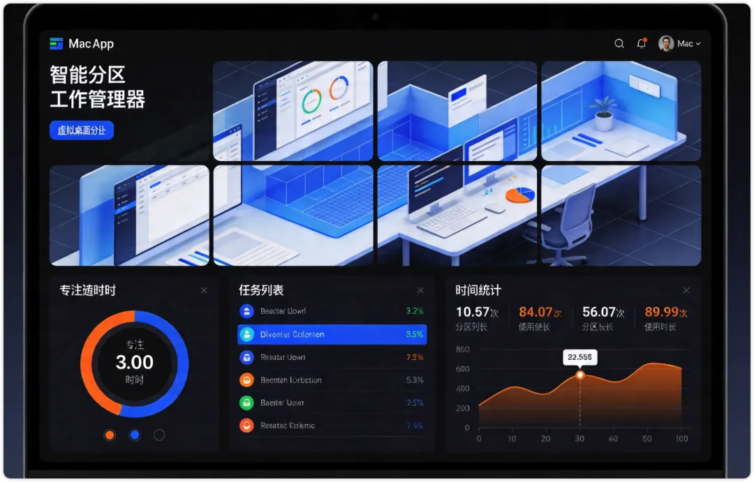 • 将Mac桌面划分为不同”工作空间”,每个空间绑定特定项目、文件和应用组合 -