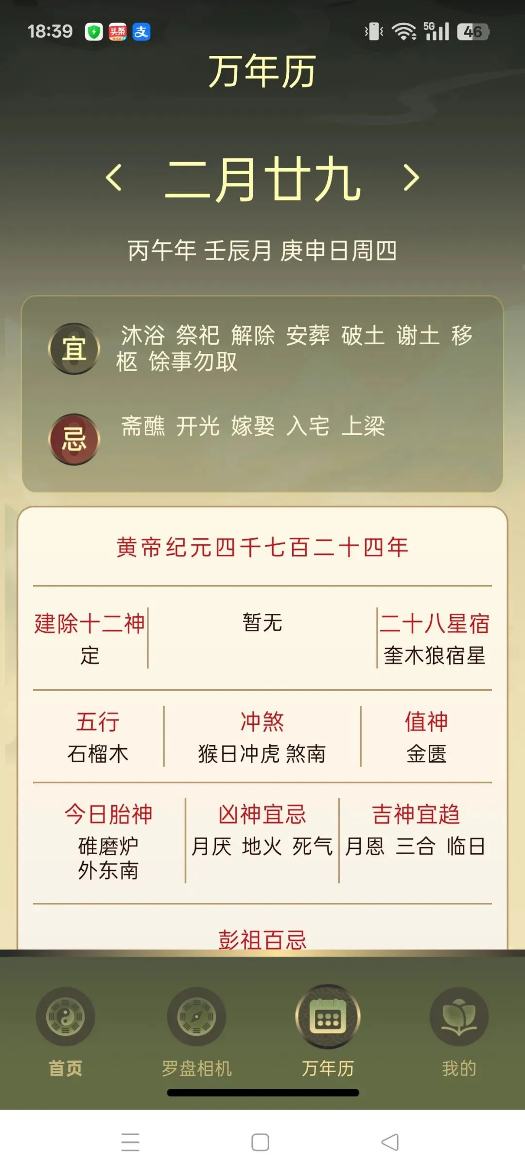 – 自带万年历,择吉更方便:APP集成了传统万年历功能,可随时查询黄历宜忌,让你在装修、动土、搬迁等大事上,轻松选择吉日良辰。