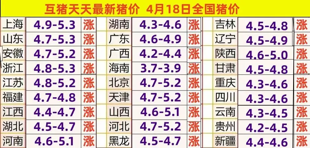 一片红!全面上涨!App-18 全国生猪市场价格汇总及行情简析