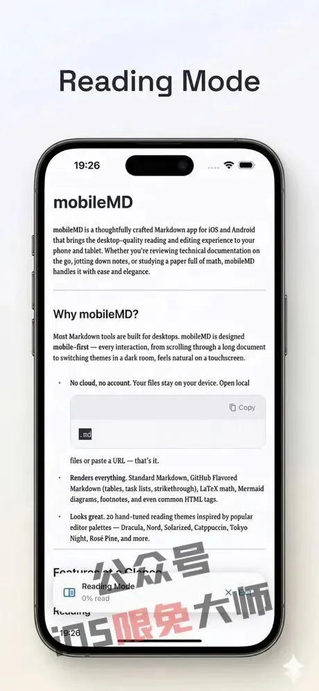 【mobileMD】一款为清晰度而生的阅读器与编辑器,非常适合移动设备上的技术文档、笔记及长篇阅读。目前软件的内购正在限时免费,获取时注意确认价格,手慢无!
