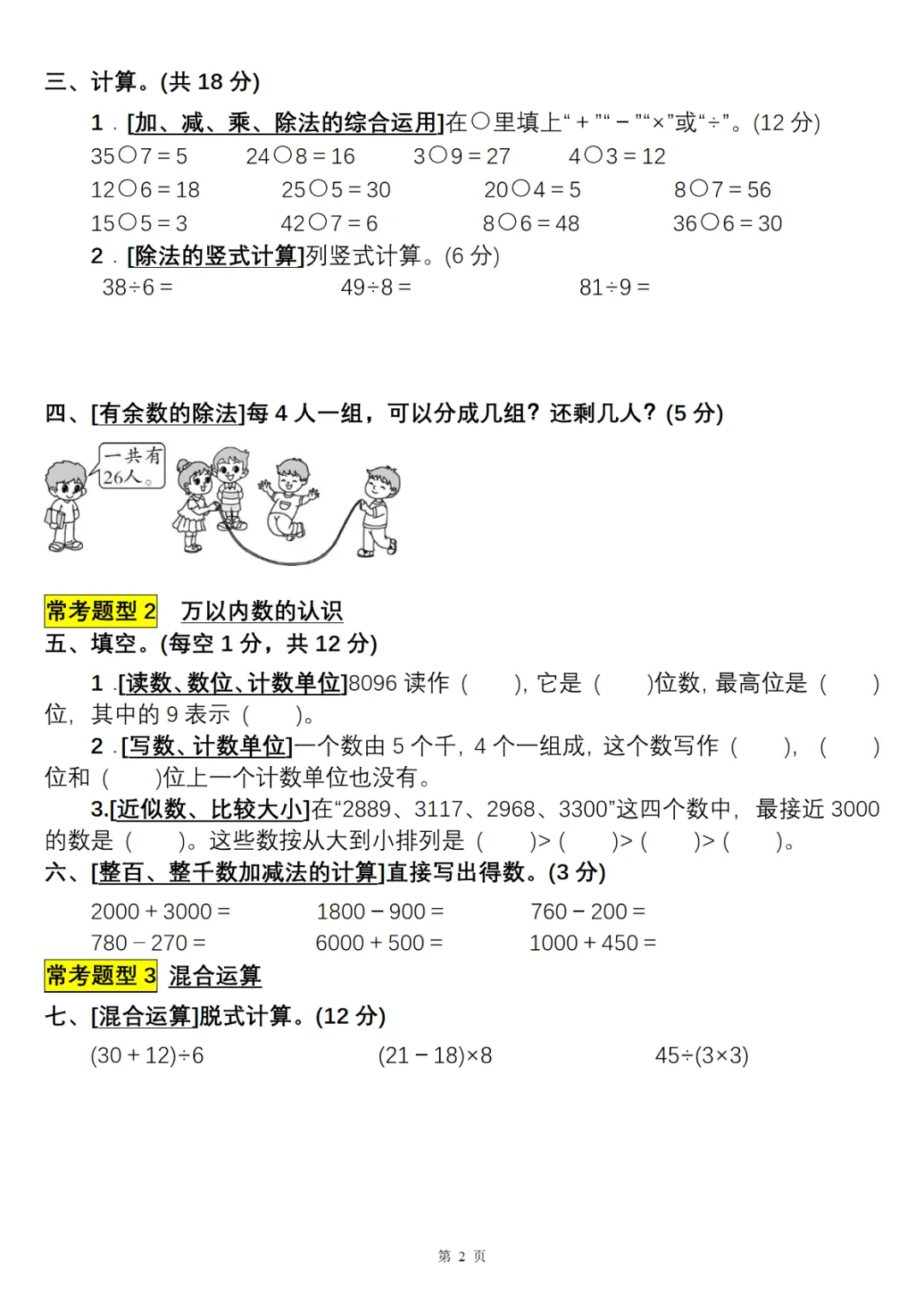 二年级下数学常考易错题综合测评卷 电子版可打印