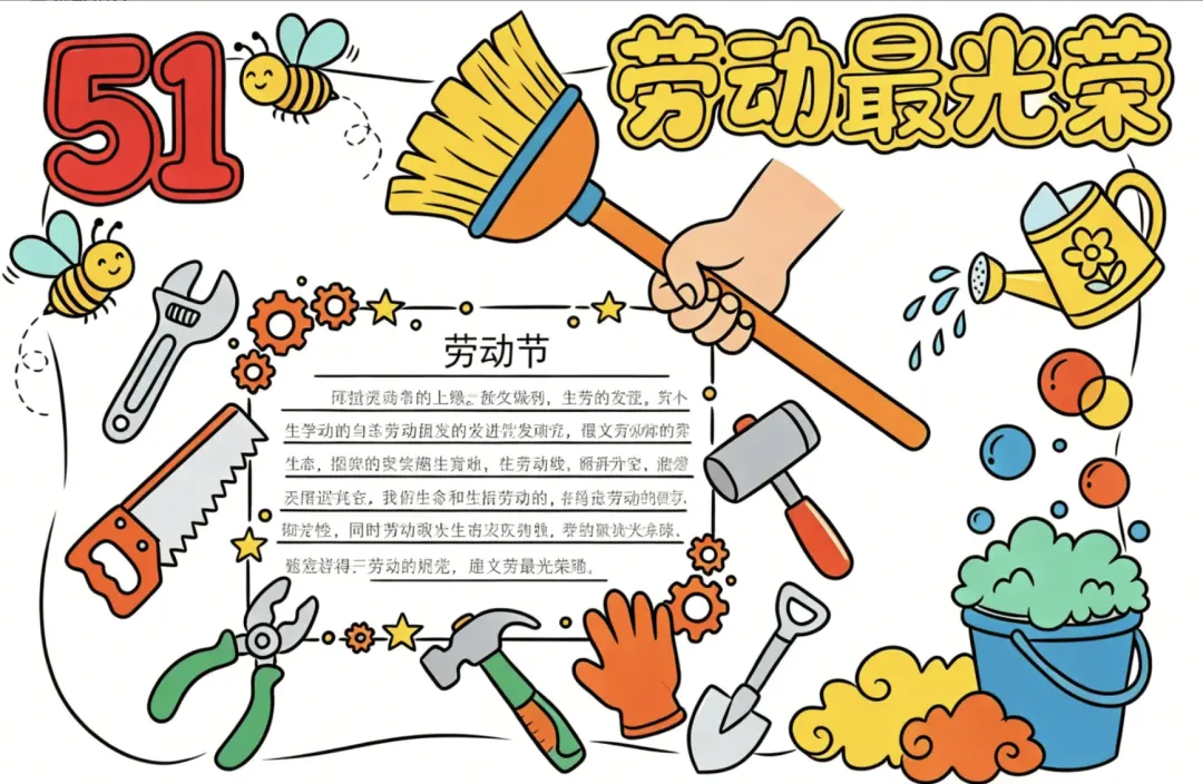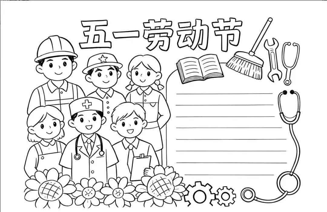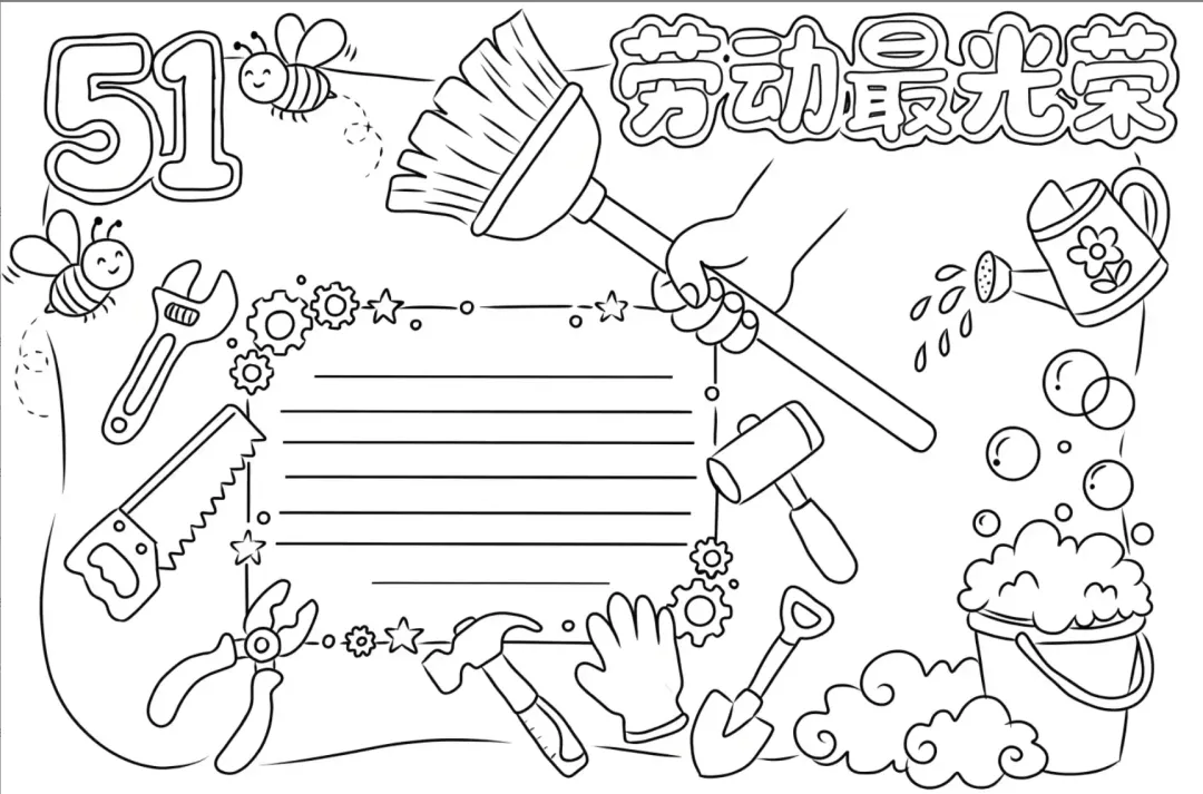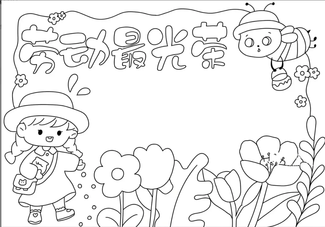 5.1劳动节手抄报线稿,可下载打印