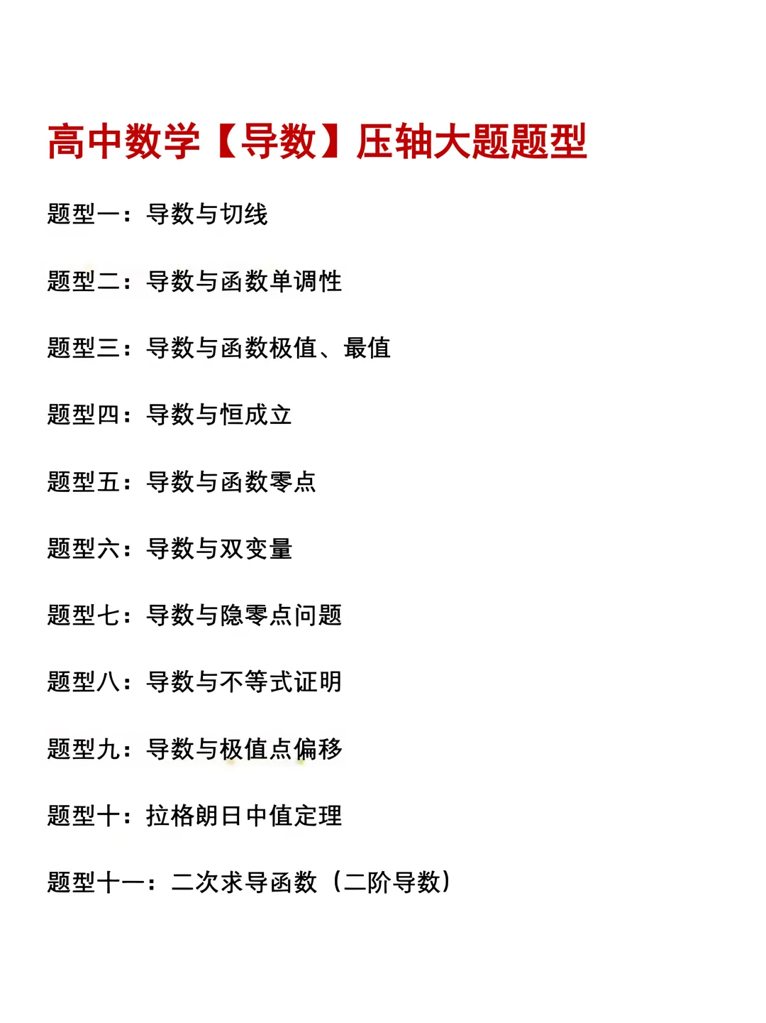 所以今天给大家分享的是【高中数学导数压轴11大题型汇总(word含详解)】,高中三年这一份就够了,希望能帮助到大家~