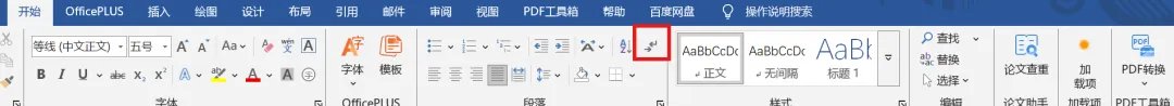 看看此时文档中是显示的「手动换行符」符号还是「回车符」符号;