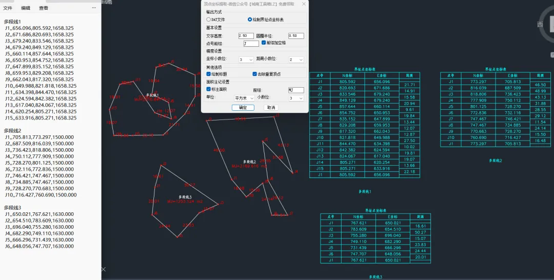 多段线坐标提取(界址点坐标表生成)V1.2更新如下: