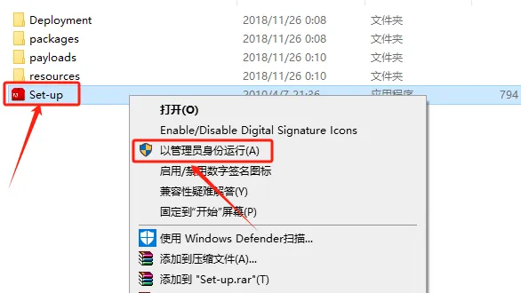 4.鼠标右击【set-up】安装程序,选择【以管理员身份运行】。