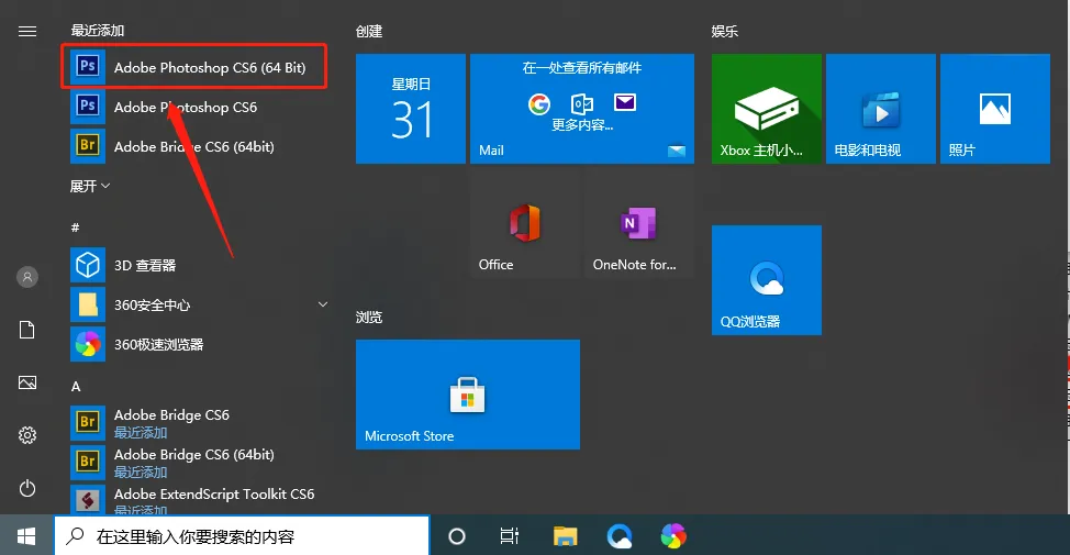 13.在桌面左下角的开始菜单栏中找到并打开ps cs6软件。