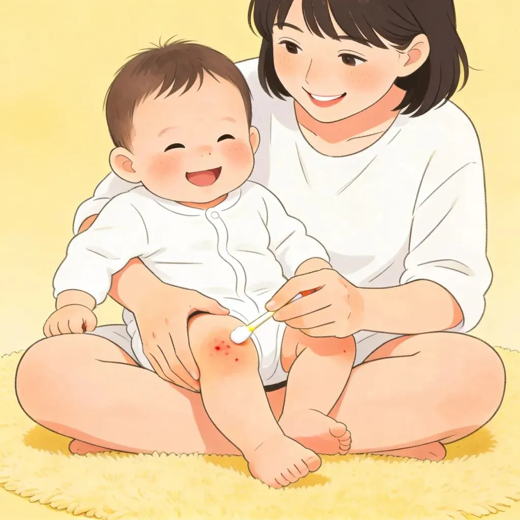 他过敏,身上起疹子,我给他涂药膏,他乖乖的,不哭也不闹,他知道妈妈在帮他,他相信妈妈,他黏着妈妈。