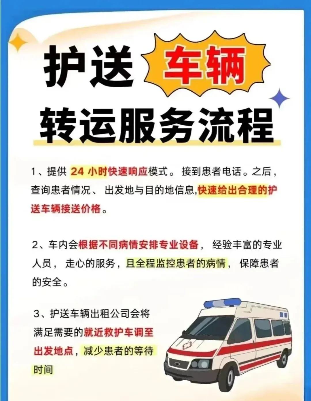 温馨提示:当您或家人需要救护车转运服务时,请务必提前规划,选择正规机构。对于病情不稳定的患者,应先咨询主治医生,确保转运途中安全。生命无价,专业护送是对健康的最好投资。