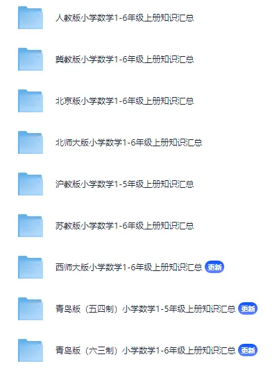 小学全科《知识点汇总》1-6年级上下册电子版网盘下载(语文/数学/英语/科学/道法)人教版/北师大版/苏教版/冀教版/多版本