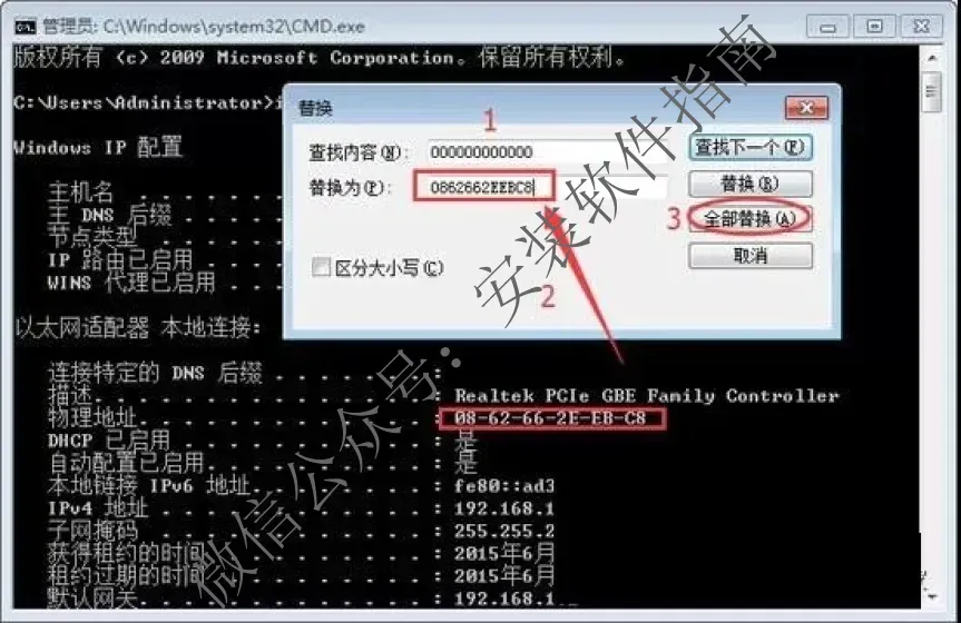 3、回到打开的“license.dat”中,点左上角的编辑》替换,输入查找内容:000000000000,替换内容为:个人电脑的物理网卡地址,点全部替换,完成后保存