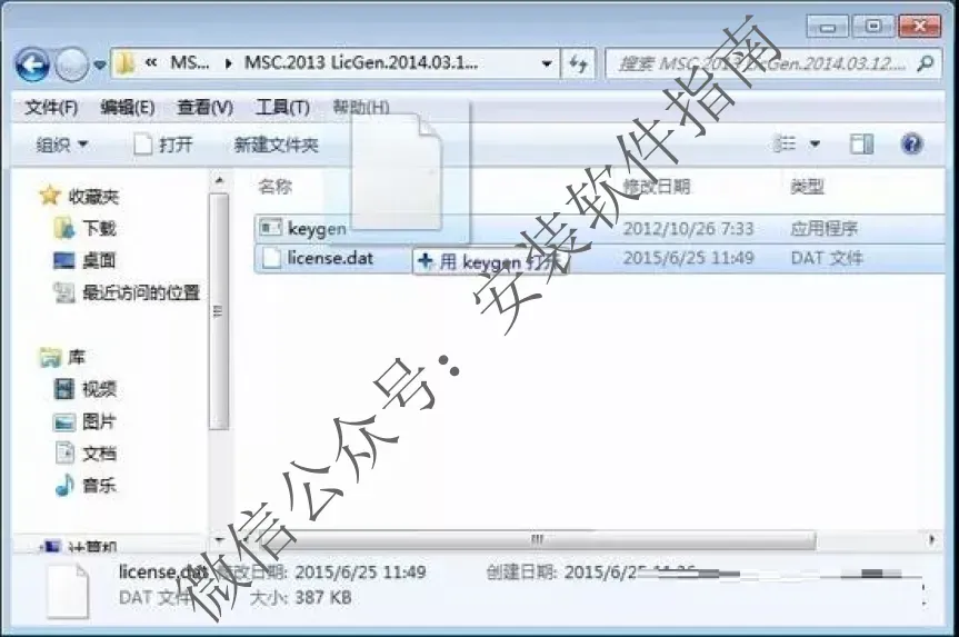 1、msc adams2015解压,然后我们打开license文件夹,打开“MSC.2014 LicGen.2015.07.15.Release”,右键点“license.dat”用记事本打开。