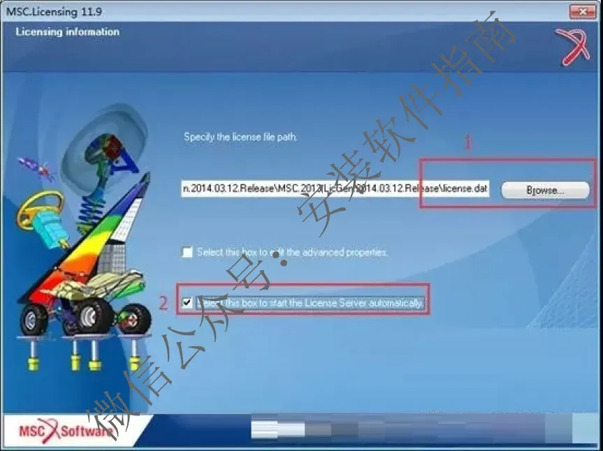 17.弹出界面,点Borwse…,选择C:MSC.SoftwareMSC.Licensing11.9目录下的“license.dat”文件(这是许可安装中新生成的)