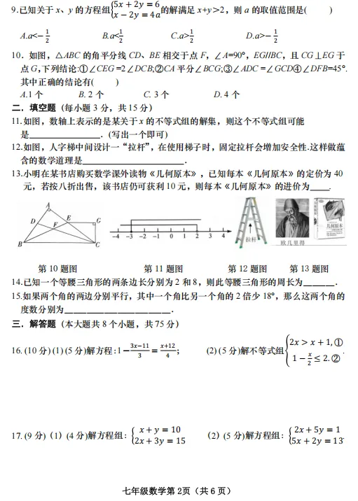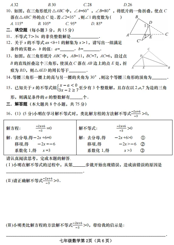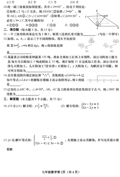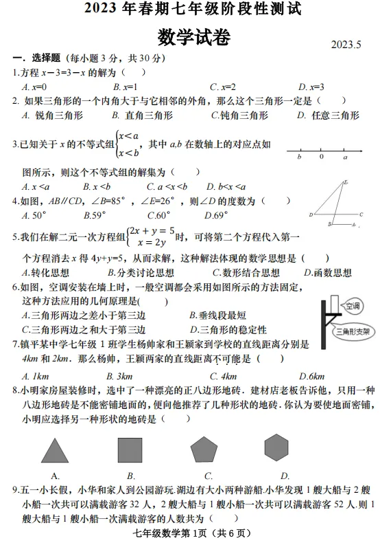 2023年春期七年级数学阶段性测试试卷+答案(word+PDF)